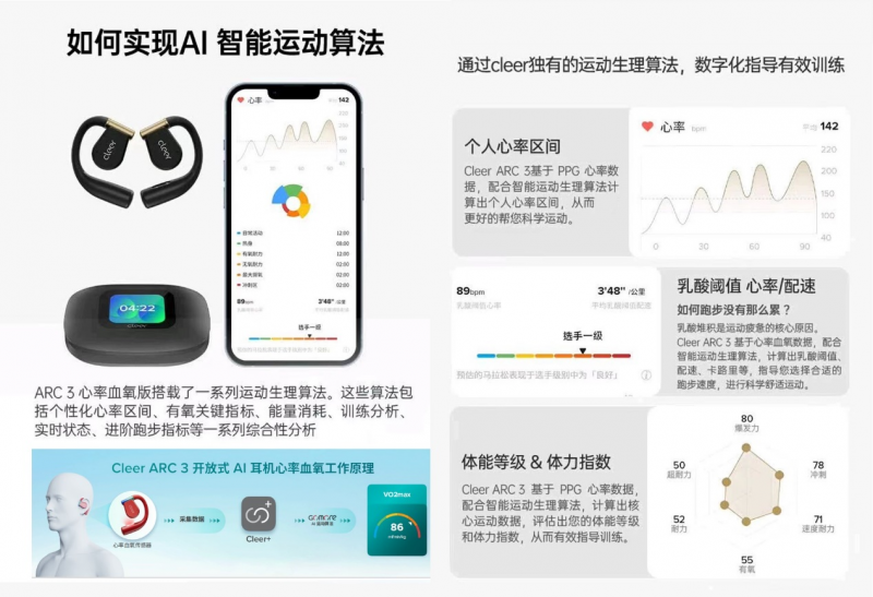 更重要的是Cleer ARC 3 音弧聯(lián)合全球頂尖專業(yè)運動科學及AI智能教練服務商GoMore,結合AI芯片與專業(yè)智能運動算法實現(xiàn)了精確的健康數(shù)據(jù)監(jiān)測功能。這款耳機不僅能檢測常規(guī)的心率和血氧數(shù)據(jù),還能通過觸地時間、步伐對稱性等高階指標,分析并糾正跑步姿態(tài),降低運動受傷的風險。此外,它還能實時監(jiān)測運動負荷,計算熱量消耗,并根據(jù)個體身體狀態(tài)評估體力值恢復時間,為用戶提供科學、全面的運動數(shù)據(jù)參考。過年吃喝不怕胖,有了它,隨時掌握身體狀態(tài),健康管理全方位Max!