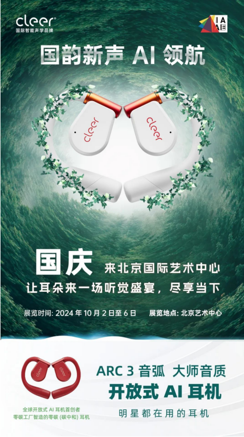 此次博覽會(huì)將持續(xù)至10月6日,如果你也對(duì)智能聲學(xué)和創(chuàng)新音頻產(chǎn)品感興趣,可前往現(xiàn)場(chǎng)Cleer展區(qū)親自體驗(yàn)這款集多項(xiàng)全球首創(chuàng)技術(shù)的Cleer ARC 3 音弧 開(kāi)放式AI耳機(jī)。此外,展會(huì)期間還將有各種精彩活動(dòng)及福利等待大家,敬請(qǐng)參觀!